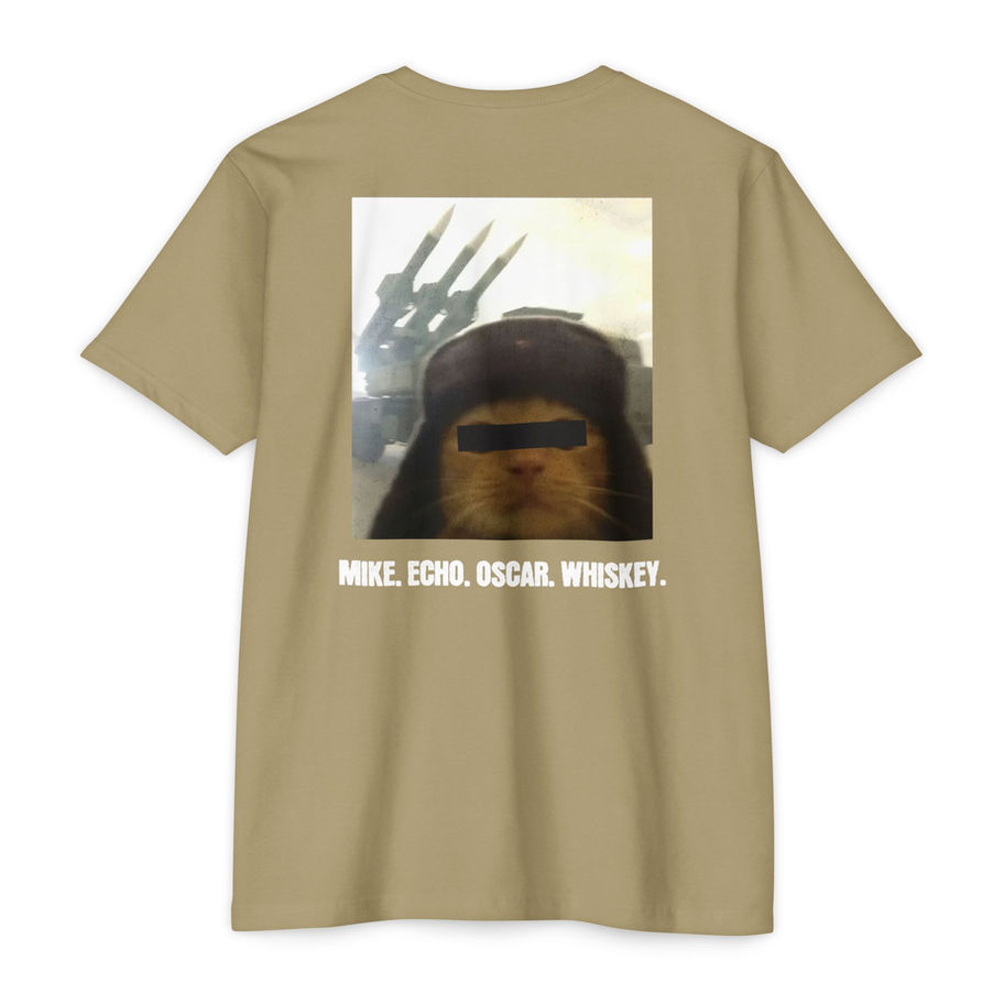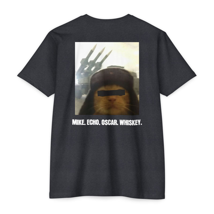 This shirt features an orange commando cat posted up in front of a missile launcher, rocking a tactical ushanka like it’s the Cold War all over again. The mission? Maximum destruction. Minimal hairballs. Whether you're hitting the gym or the gulag (in-game, of course), this feline is locked, loaded, and ready.